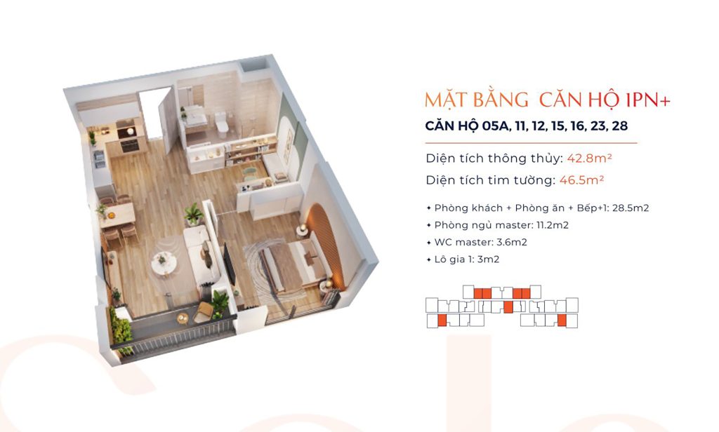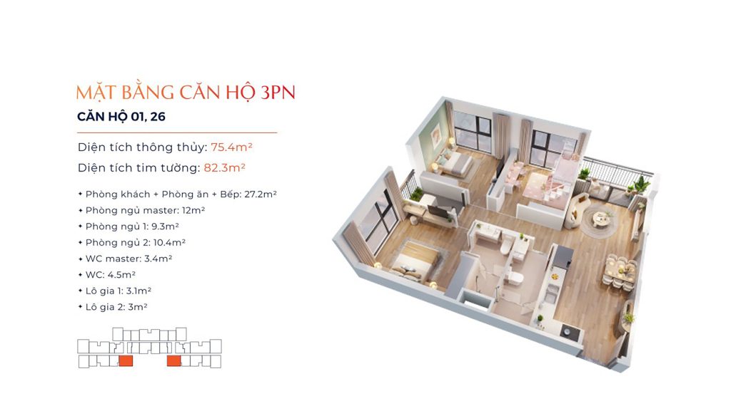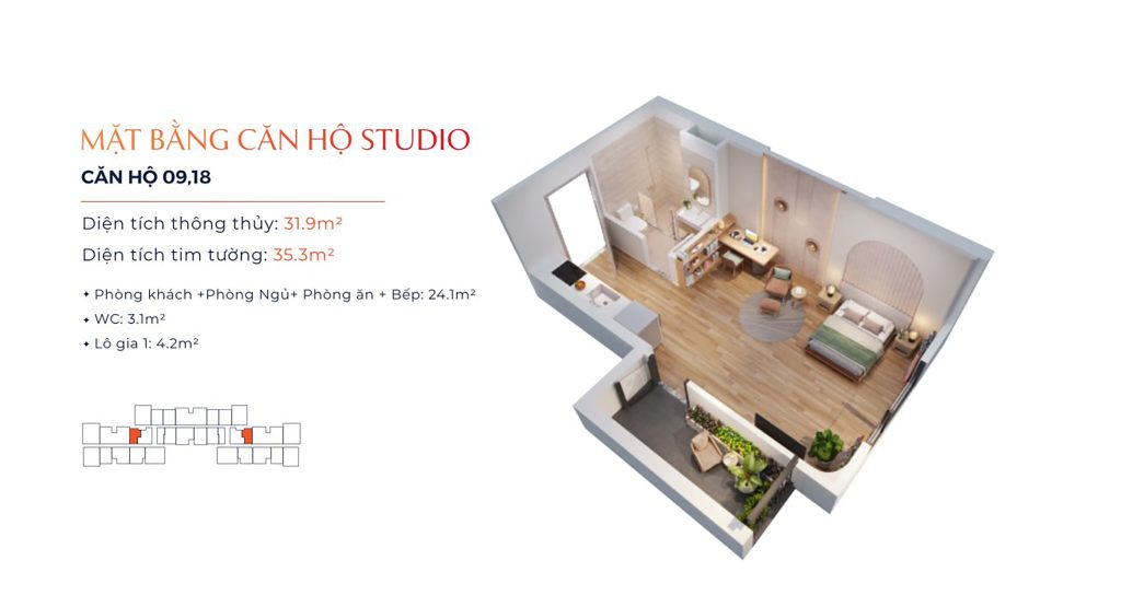 | Các loại hình căn hộ | Studio, căn hộ 1 – 3 phòng ngủ |