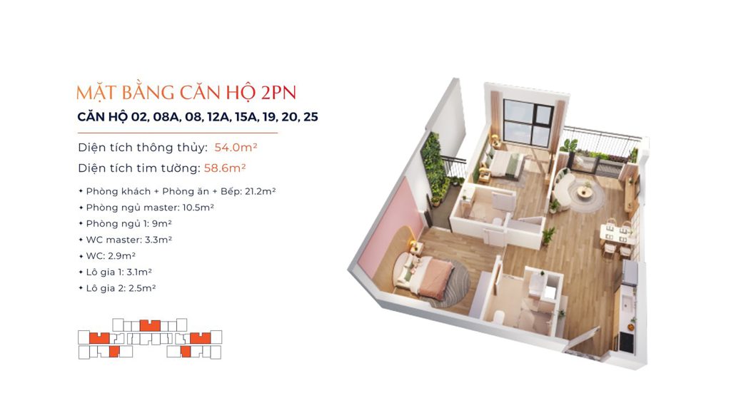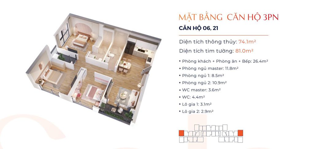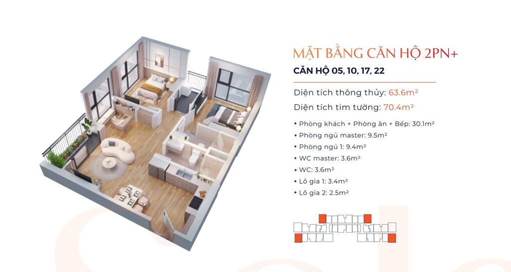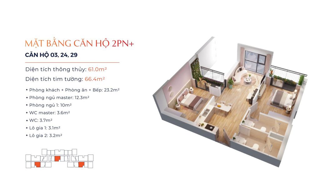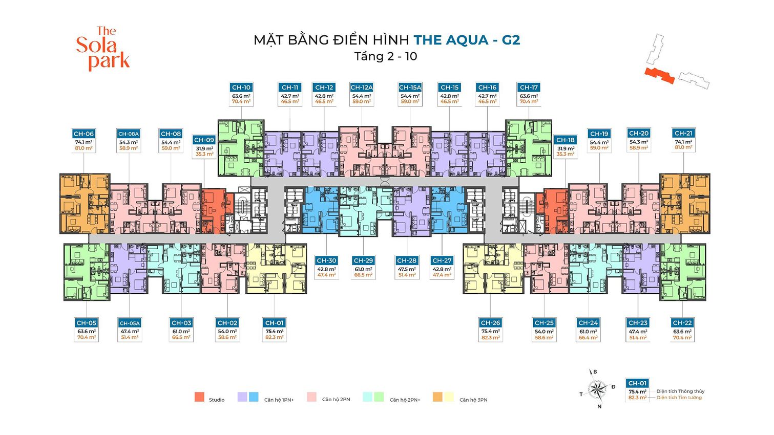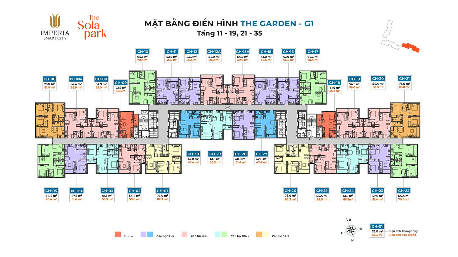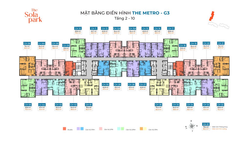 - Diện tích căn hộ: 31,9m2 – 42,7m2 – 54,4m2 – 63,6m2 – 76m2.